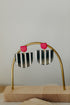 Ein kräftiger Farbakzent kann dein Outfit sofort lebendiger wirken lassen. Unsere MELA Ohrringe kombinieren einen oberen Stecker in leuchtendem Himbeer-Polymer Ton mit einem leichten Acetat-Anhänger in Schwarz-Weiß. Der Kontrast zwischen der intensiven Farbe und dem grafischen Muster bringt moderne Spannung in dein Styling, ohne aufdringlich zu wirken.