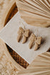 Mit ihrem natürlichen Sandton lassen sich die Schleifen Ohrringe vielseitig kombinieren und bringen eine ruhige, feminine Note in jeden Look. Ein zeitloses Accessoire für alle, die minimalistischen Schmuck mit verspieltem Detail lieben.