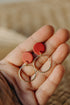 Der elegante Messinganhänger in Kreisform setzt einen stylischen Akzent und verleiht den roten Ohrringen eine edle Note.